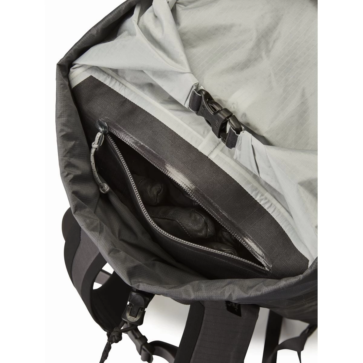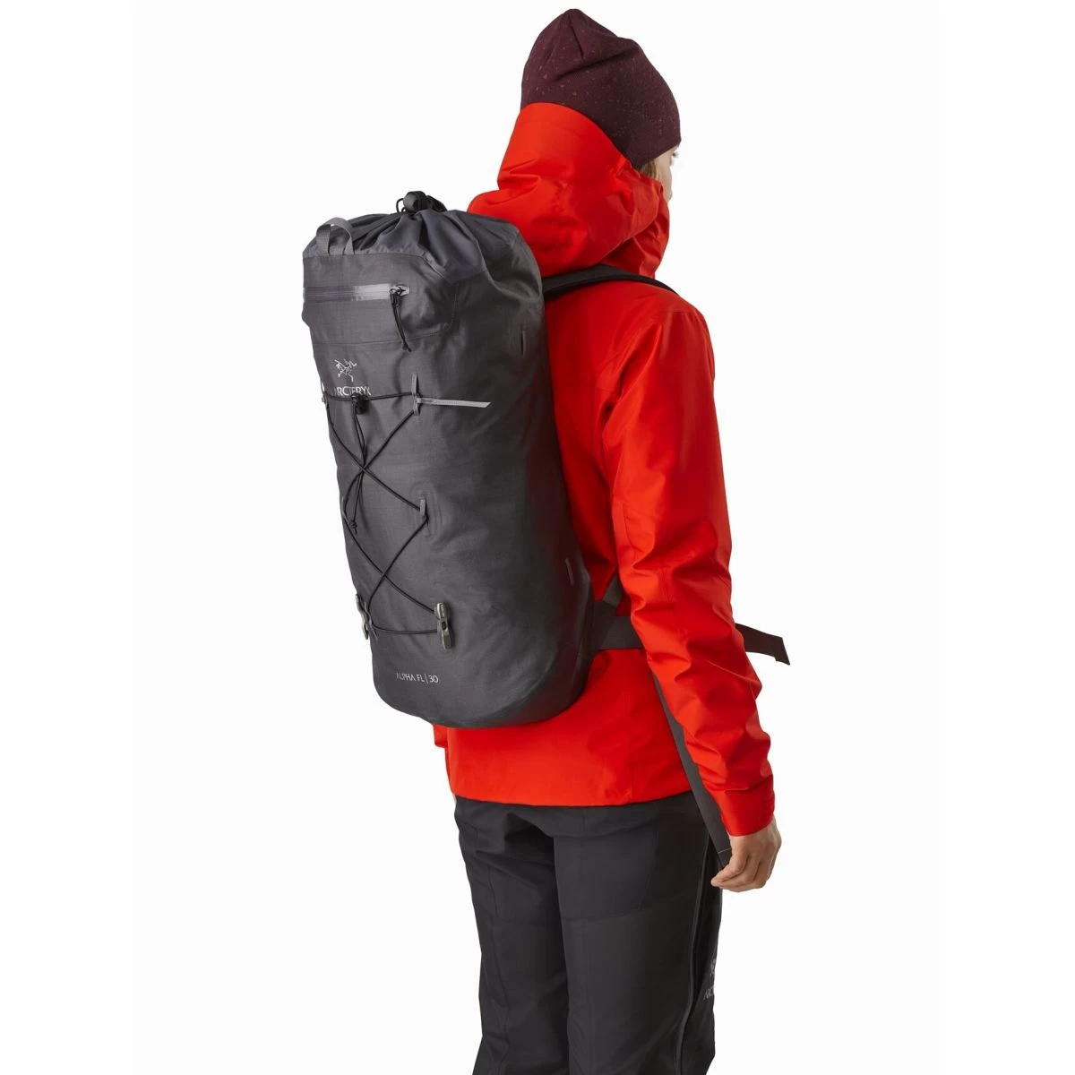 Fast, light and alpine strong. The Arc’teryx Alpha FL 30 is hardwired for climbing. Exceptionally weather-resistant and durable, its streamlined profile stays out of the way while swinging ice tools and the intuitive pull-to-open/pull-to-close drawcord system gives quick and easy access. A top strap secures a rope and six lash points with an integrated bungee system provide external carry options.
