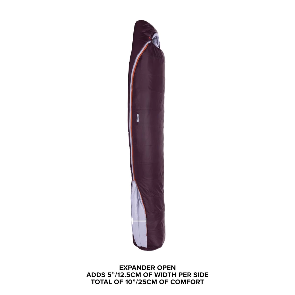 • Expanded comfort with two zippered panels, running from shoulder to footbox, adding five extra inches of room to each side – 10″ total when completely expanded