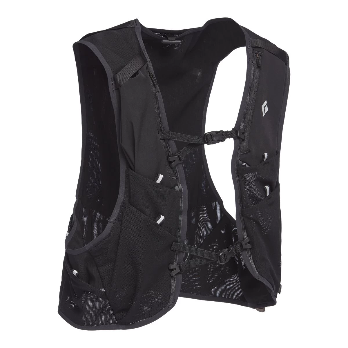 Engineered for ultra-marathons and fast-paced adventures where speed is the name of the game, the Distance 4 Hydration Vest blends BD’s pack suspension technology with premium materials for a tour-de-force on the trails. Featuring Stitch-less Edge Taping Technology for superior comfort, movement, and weight reduction, the Distance 4 Hydration Vest is equipped with an innovative over the shoulder Z-Pole carry system that can be easily accessed while on the go. The harness system is constructed with side stretch panels, which gives you a more secure ride while running. Dual flask pockets fit two BD HydraPak® SoftFlasksâ„¢ (included), while zippered chest pockets, a lumbar pocket, two main back pockets and small stash pockets provide ample storage for essential supplies.