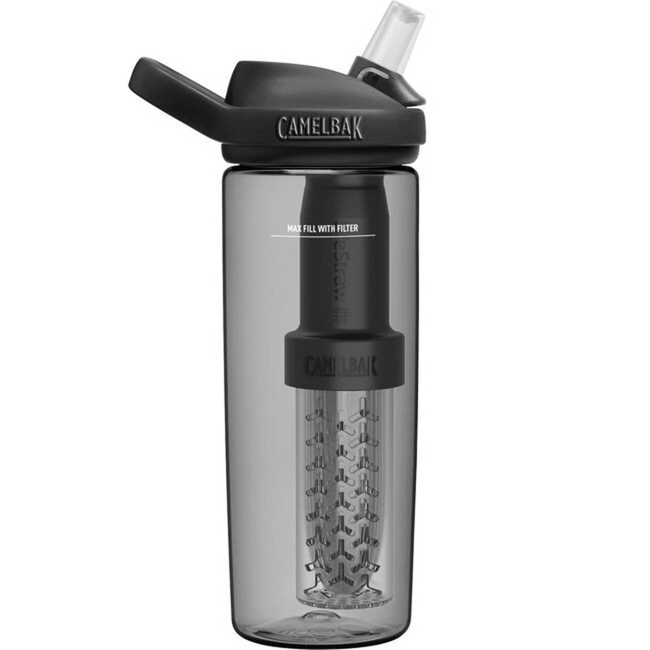 The path to reliably clean drinking water begins with the CamelBak Eddy® + filtered by LifeStraw®. Whether you are a couple days into a backcountry trip or looking for an everyday water bottle, you need a trustworthy source for safe water wherever you roam. Water passes through two separate stages of filtration – the Hollow Fiber Filter removes bacteria, parasites, and microplastics and the Ion Exchange Filter reduces lead, bad taste, chlorine and other unwanted chemicals. Leak-proof when closed and spill-proof when open, the universal Eddy + straw cap and bite-valve interface delivers a high flow for steady hydration when you need it most. The main vessel is made with Tritanâ„¢ Renew, a highly durable and lightweight plastic made with 50% recycled material. A more sustainable solution, Tritan Renew is made using a recycling process that’s more efficient than standard mechanical recycling, producing a superior material with less demand on finite resources. It’s odor and stain resistant and free of BPA, BPS, and BPF. Every purchase shares the gift of clean drinking water – one product, one child, one year of safe water.