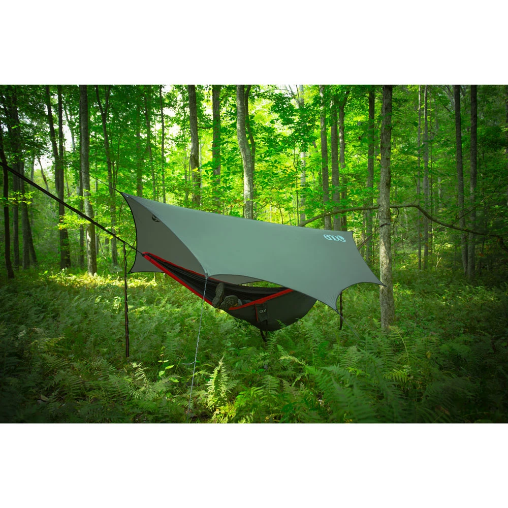 When a squall comes a-blowin’ through, you’ll be glad you’ve got the Eno DryFly at the ready. Its 8-point guy system and ample footprint make it perfect to withstand a gale. Stay out of the rain and rest easy knowing your tarp will still be there once the storm passes.