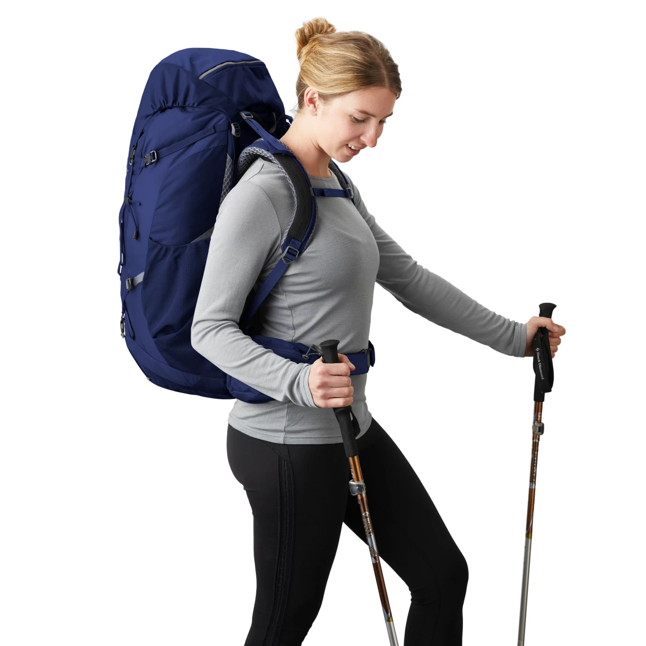 - Dual side mesh pockets featuring side trail access with top and bottom compression straps