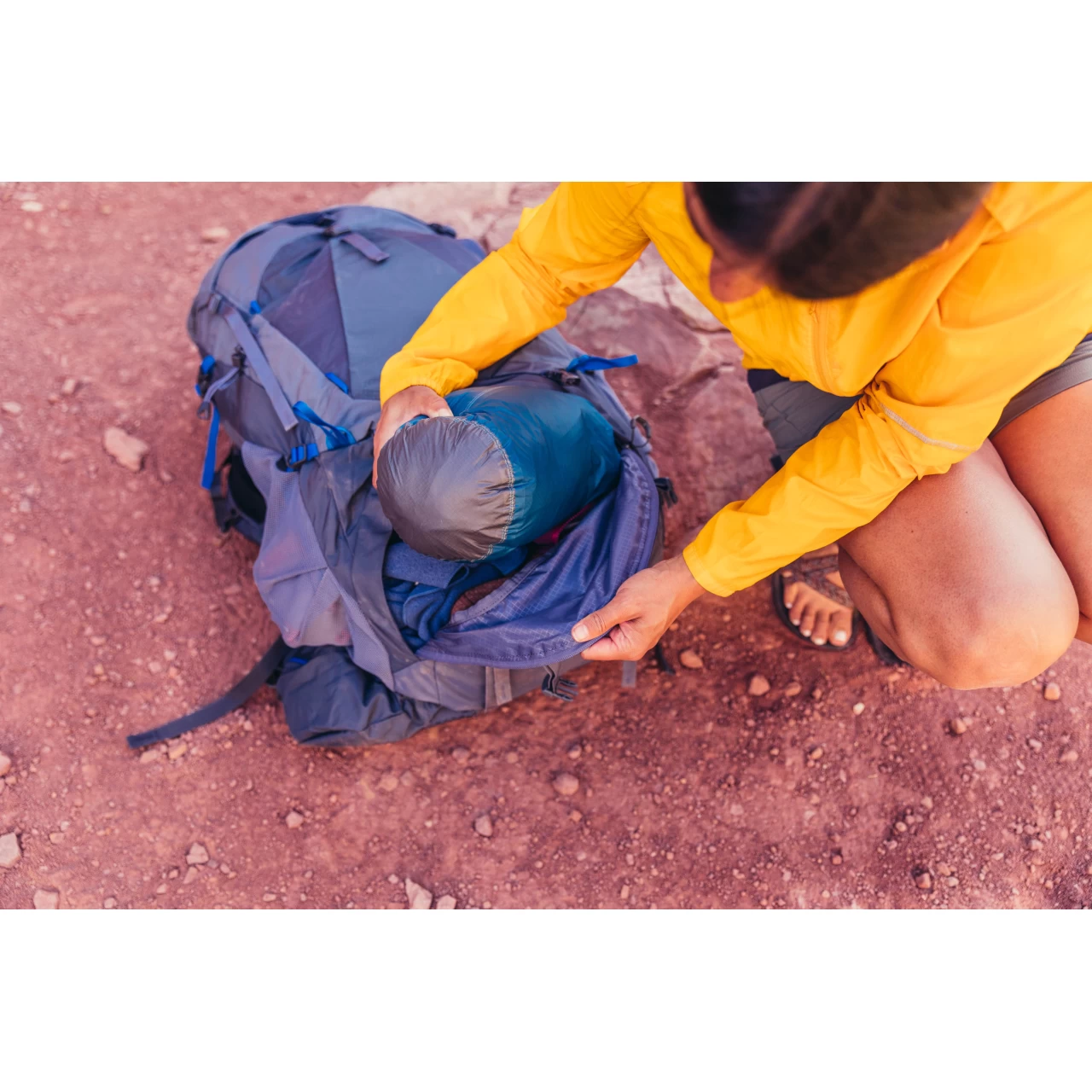- Zippered bottom sleeping bag compartment with removable divider