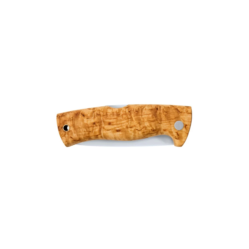 The first folding knife that Helle ever designed, the Dokka is a classy, all-purpose knife. A gorgeous birch handle hides integrated steel liners that house the triple laminated stainless steel blade when it is folded. The Dokka comes with a genuine leather pouch with an integrated belt loop.