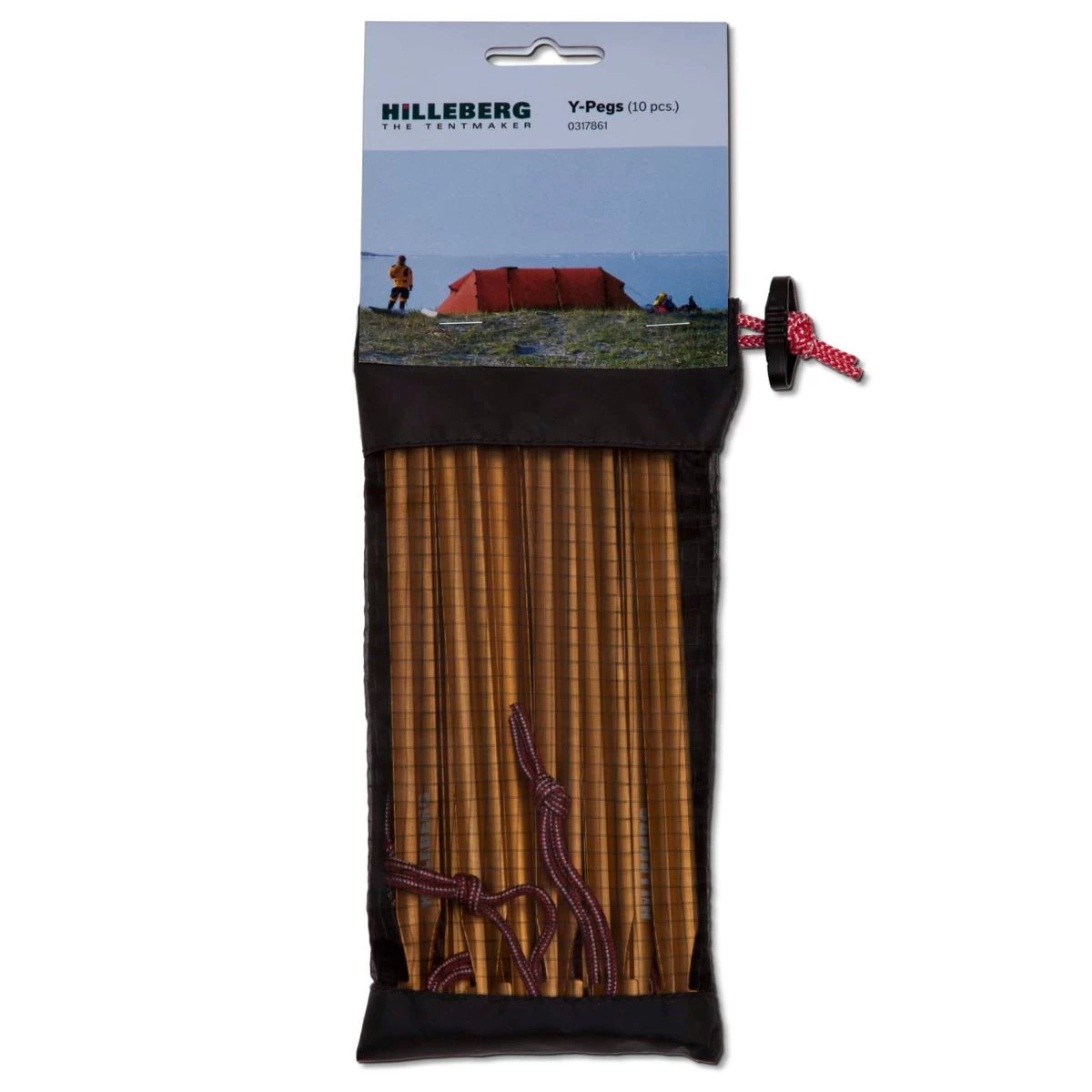 Hilleberg’s Y-Peg is exceptionally strong yet quite lightweight, and its “Y” profile gives both excellent penetration in hard ground and plenty of surface area for reliable hold in softer conditions. Both because of its shape and its durable, hardened aluminum body, the sturdy Y-Peg can be hammered into hard ground. Its bright, gold anodized color makes it easy to see, and an attached string loop provides for easy removal. Set of 10 pegs.