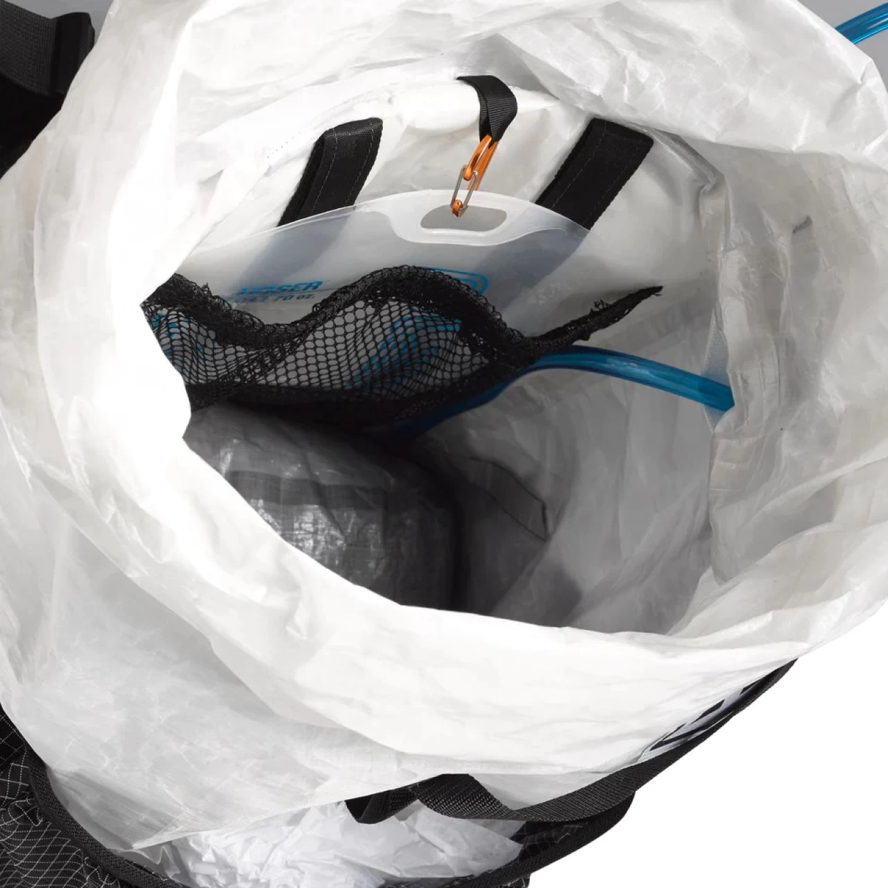 • Roll-Top closure system with side compression straps for vertical compression