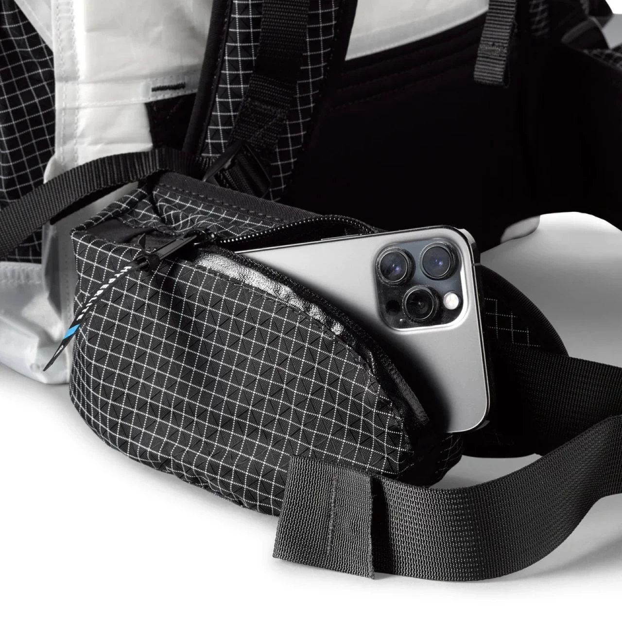 • Dyneema® Hardline zippered pockets on hip belt with #5 YKK zipper