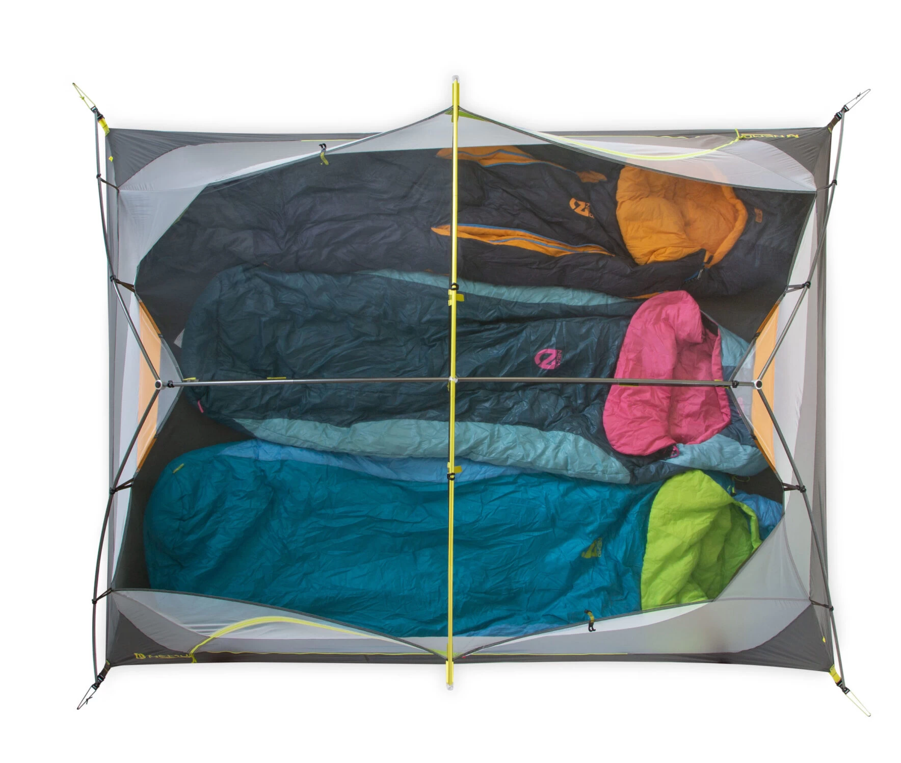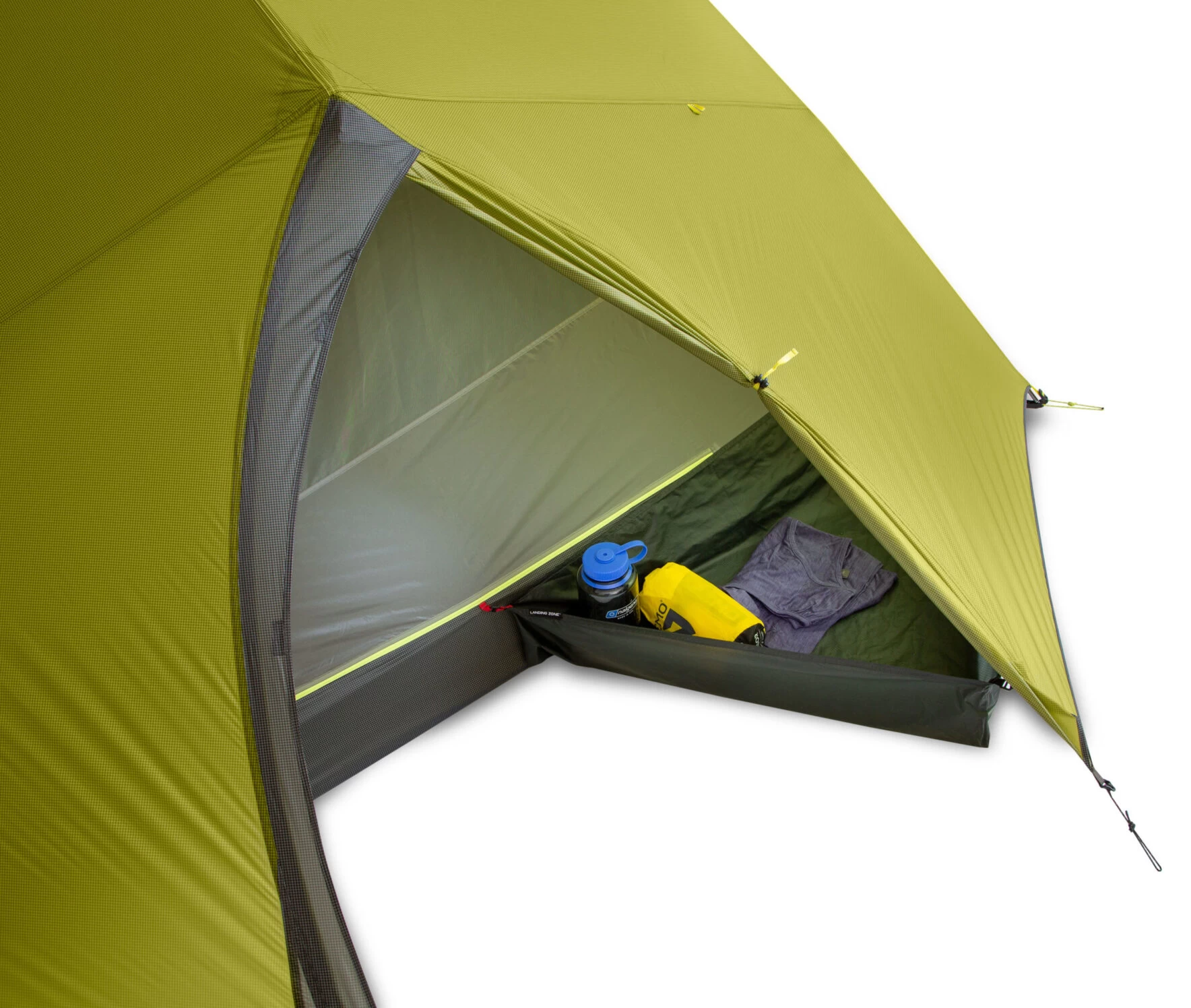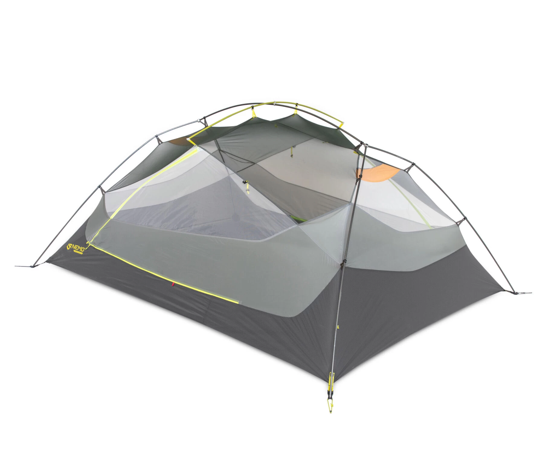 Carrying forward the legacy features of its best-selling predecessor, Dagger OSMO includes a color-coded, DAC Featherlite NSL hubbed pole structure for generous interior volume and a fast, intuitive setup. With two doors and two expansive trapezoidal vestibules, Dagger OSMO leads its category for storage area and volume. NEMO has also added some new features such as: the Divvy Cube™ rectangular stuff sack which packs better and allows you to split the load with a partner; the Landing Zone™ tub for protected storage under the vestibule; and Gatekeeper™ door clips which make holding the doors back a cinch. Other thoughtful features include an overhead Nightlight Pocket™ headlamp diffuser for a comfortable glow at night, gear pockets for storage of personal items, and a 100% recycled Repreve™ pole bag that protects the poles and takes the place of unnecessary poly bags. When your adventures require one tent to rule them all, Dagger OSMO delivers increased performance and versatility — and reduced impact on the planet.