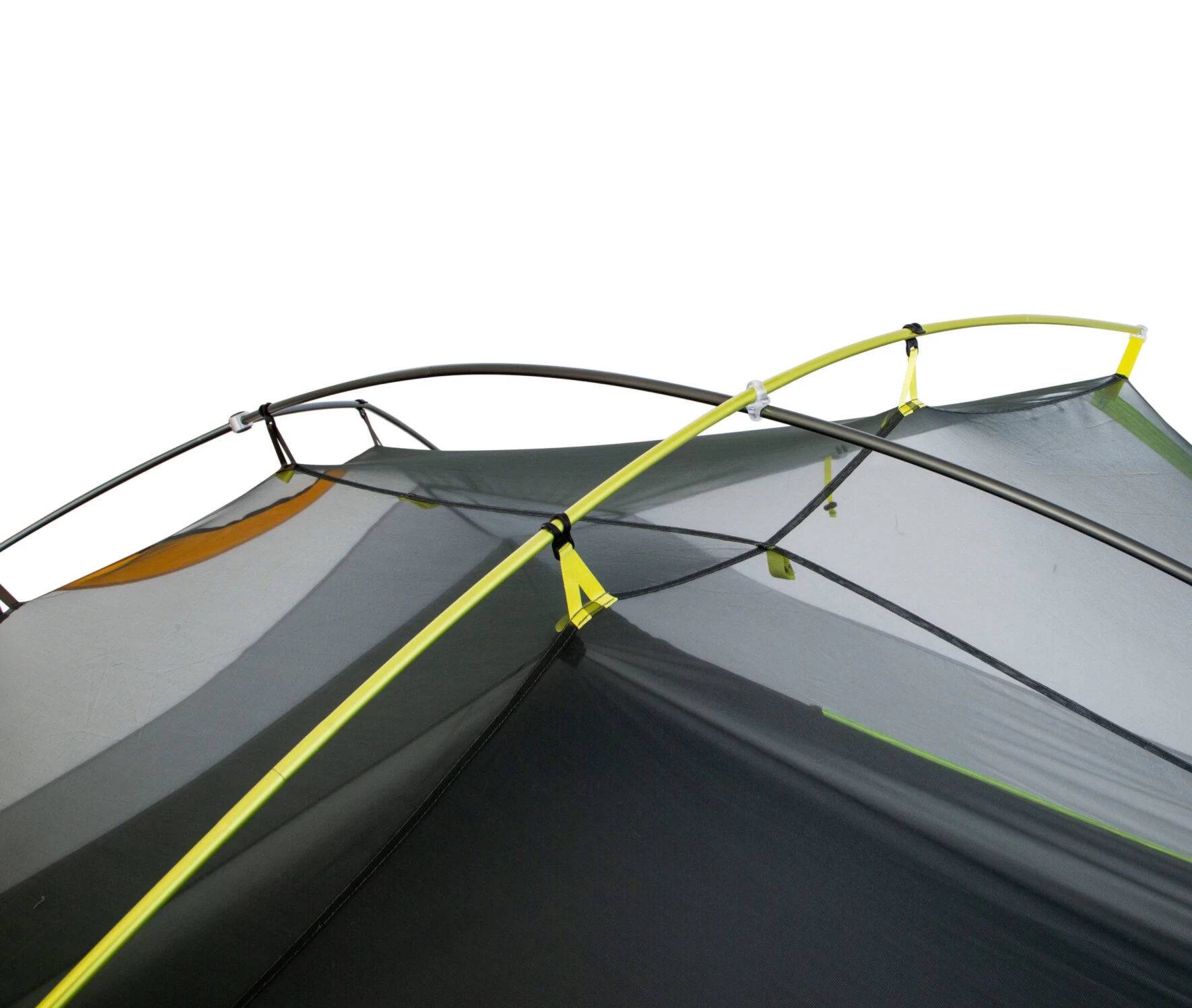 - Color-coded, hubbed pole set with color-matched webbing on the tent makes setup intuitive.