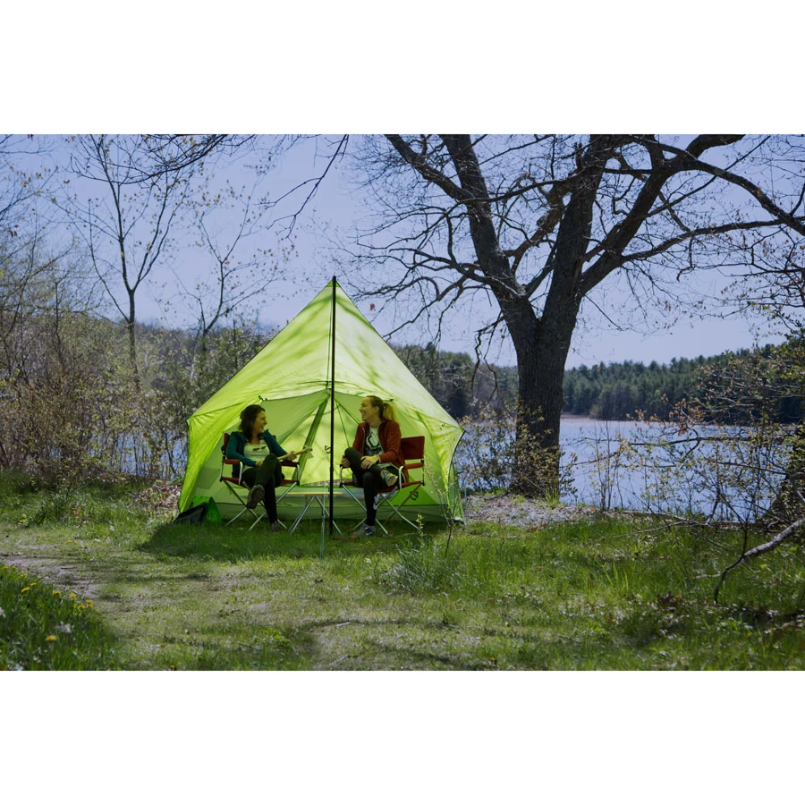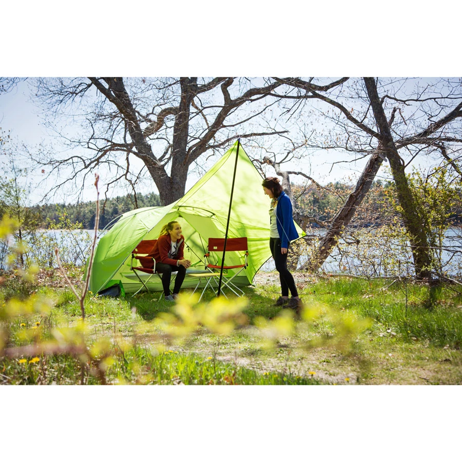 When it comes to festivals or campsites with a beautiful view, the NEMO Front Porch 2P is a fresh approach to tent design. Instead of setting up a tarp and tent separately, the Front Porch combines them into one elegant package. It’s both a sheltered area for hanging out and enjoying the scenery, and a cozy and intimate area to retire to at the end of the night. There’s a smaller vestibule out back for storing extra gear, plus Light Pockets™, lantern loops and everything you need for setup, including the tarp pole.