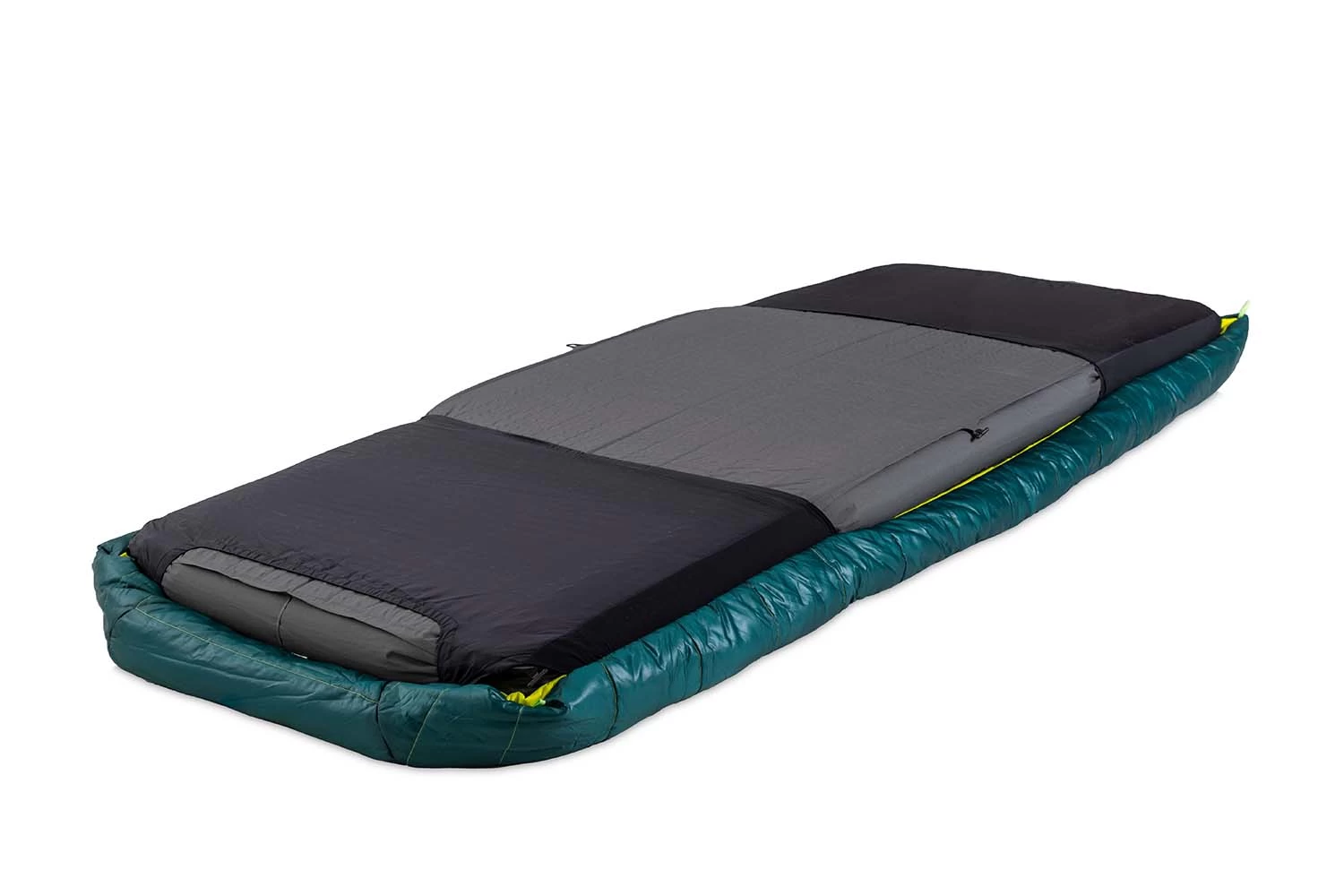 The NEMO Jazz sleeping bag is about bringing the experience of your bed at home with you wherever you choose to make camp. It has a collection of thoughtful features that go far beyond the ordinary. A built-in bedsheet gives you versatility on summer nights and is removable for washing. An integrated pad sleeve keeps your pad in place if you reposition in the night. The sleeve is topped with an insulated featherbed-style quilted layer to add a little plushness and warmth.