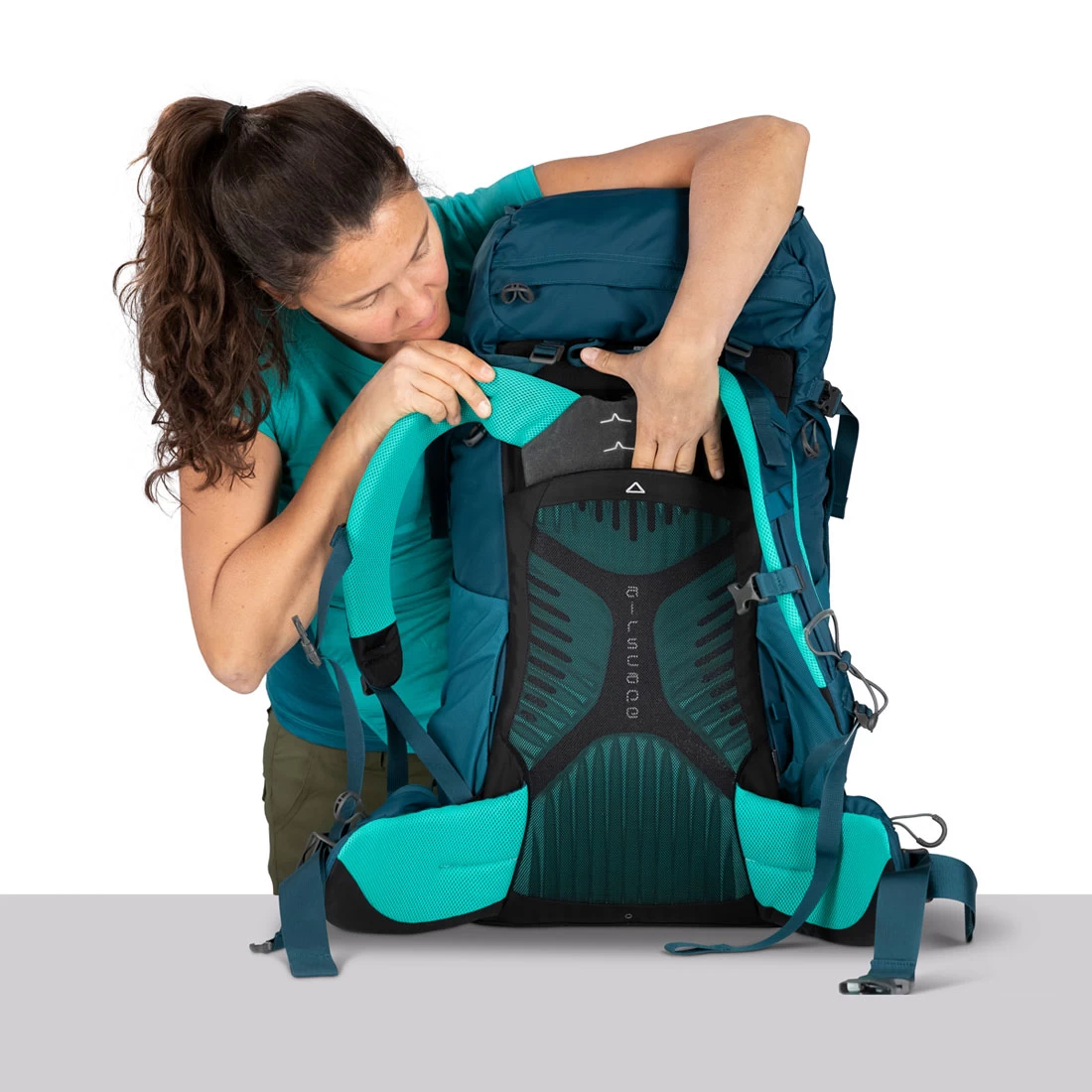 Exploring the sandstone canyons of the desert, thwacking through routes filled with pokey brush and trees, or clearing wilderness trails with Pulaski ax in hand—this is what the women’s-specific Kyte 46 was made for. Built with durable fabrics for demanding outdoor conditions and activities, the Kyte has all the features you need to enjoy the experience and get the job done. The integrated raincover deploys quickly to keep your gear dry, the rear stretch mesh shove-it pocket stores small items like a jacket for quick access, and Stow-on-the-Go trekking pole attachment makes it easy to free your hands without stopping to take your pack off. Like all Osprey packs, it also includes unparalleled fit and comfort.