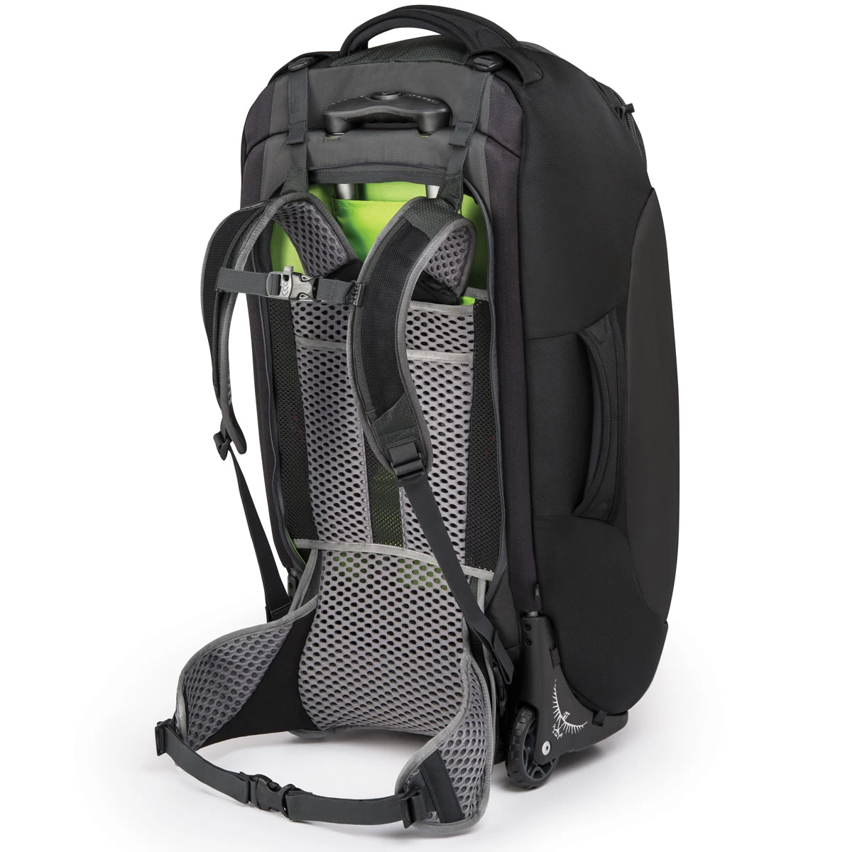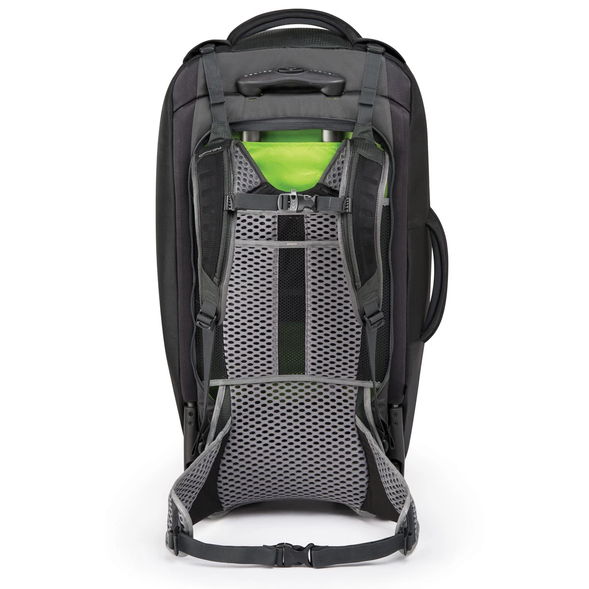 The Sojourn 45 from Osprey is a 45-liter wheeled backpack with a high-clearance HighRoad Chassis, padded StraightJacket sidewalls, and a ventilated and adjustable suspension for carry-comfort matching that of industry leading backpacking packs.
