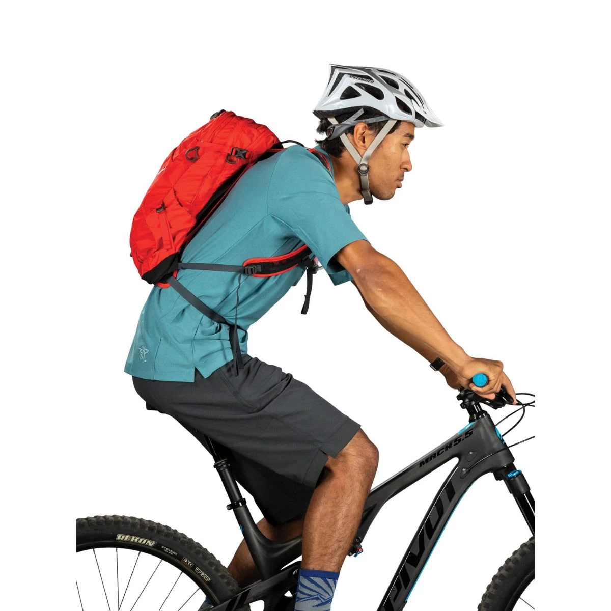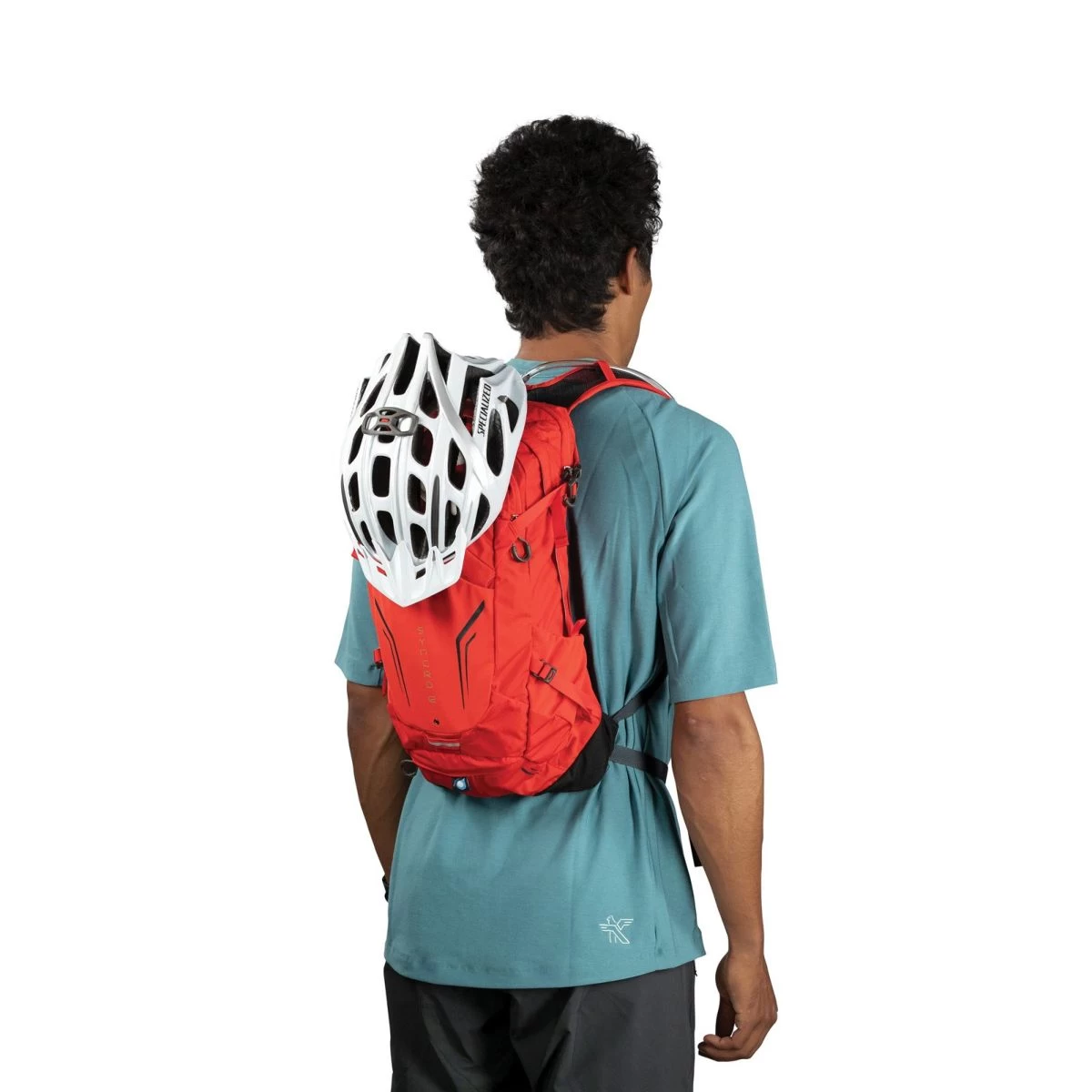 — Osprey-engineered bike-specific harness with winged shoulder strap shape contours the shoulder providing superior comfort and stability