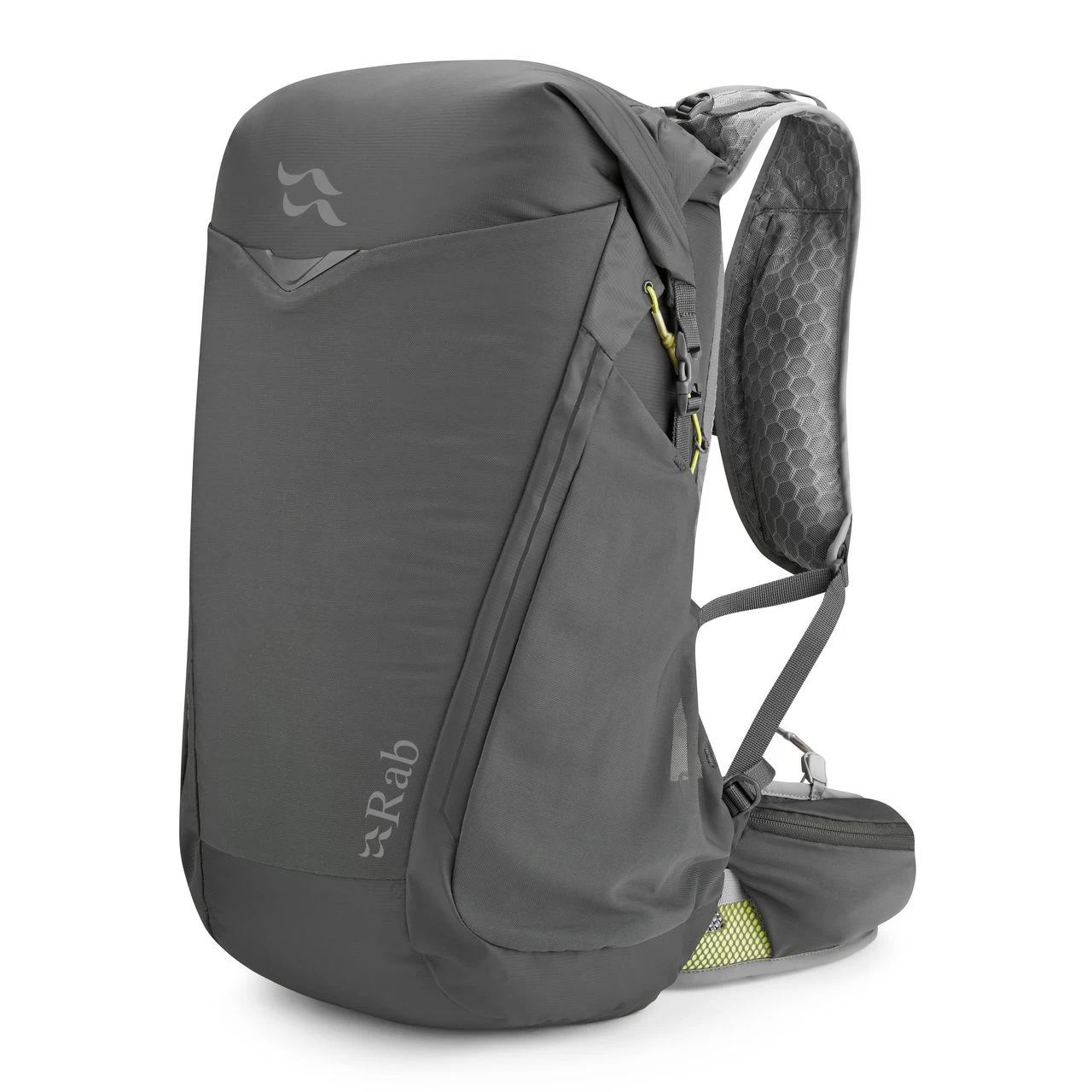 The Rab Aeon Ultra 28 is the ideal pack for committed mountain runs and fast hiking adventures in all weather, with volume for an overnight in a hut or bivi. Built with tough, water-resistant fabric, taped seams and roll top closure, the Aeon Ultra seals out the elements, for those who get out and get it done. On-harness walking pole attachment and stretch side stash pocket enable quick access to kit for adapting to oncoming terrain or variable conditions. Hydration compatible with space for a 3L bladder with multiple harness pockets for storing snacks, gels, or flasks, you can stay refreshed without needing to stop.