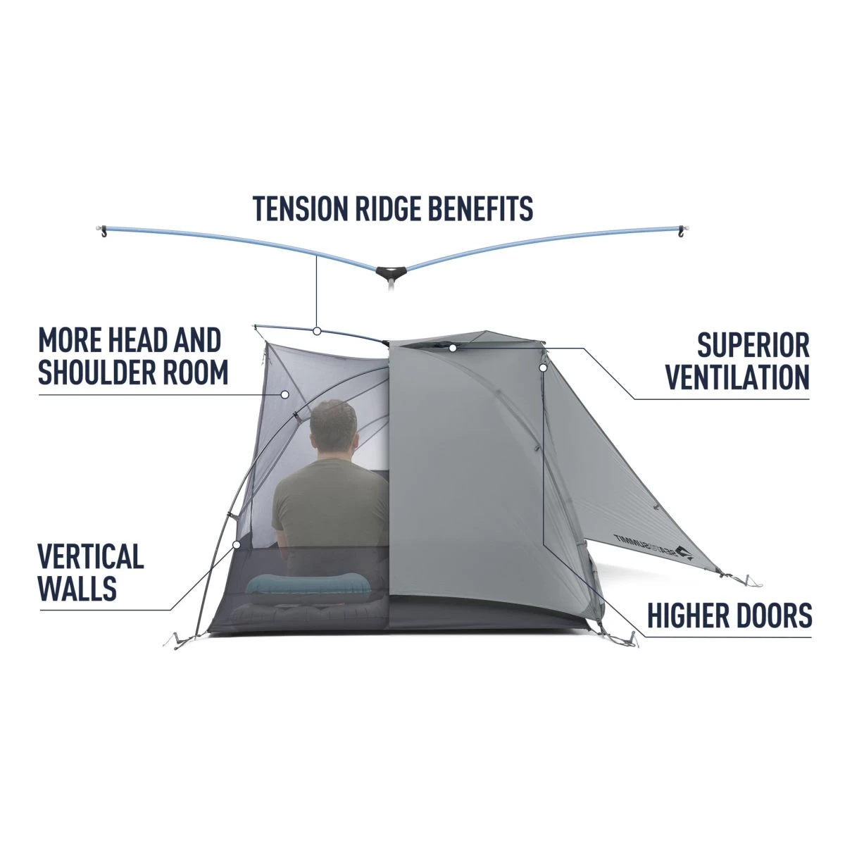 • Tension Ridge™ raises the tent’s shape upwards for more usable head-and-shoulder space and creates truly higher doors for easier entry and more vestibule storage.